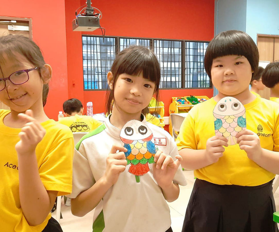 Photos of Holy Innocents' Primary School Student Care's students engaging in the SCC activities. Poi Ching School Student Care photos will be uploaded when ready.